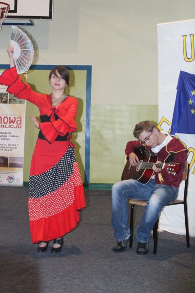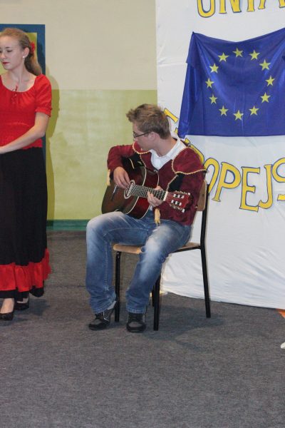 Goście obejrzeli reportaż filmowy przygotowany przez uczniów naszej szkoły na temat: "Co wiemy o Unii Europejskiej" <zobacz film>> oraz fragmenty programu artystycznego poświęconego krajom wspólnoty. Po części artystycznej odbyło się rozdanie dyplomów i nagród - w tym tej najważniejszej: biletu do Brukseli dla Joasi Ochałek wraz z opiekunem- p. A. Ochałek-Skałbą.